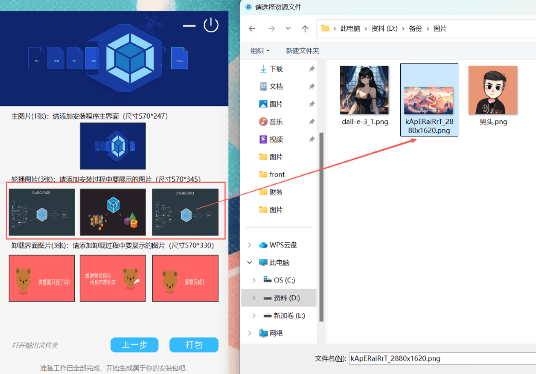 也可以自行更换安装进度页面效果图,点击图片然后选择