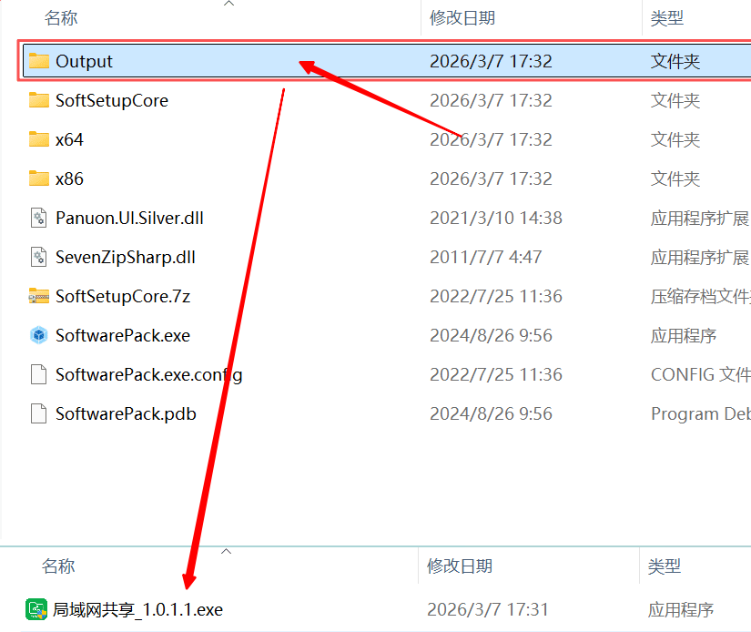 打包后的exe文件位置,找到打包工具的目录,找到Output文件夹打开,一般是这里的第一个exe安装程序,打包多次会有多个