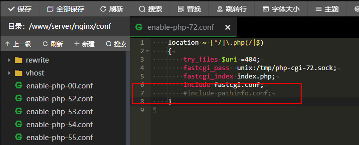 3、进入文件/www/server/nginx/conf/enable-php-7.2.conf