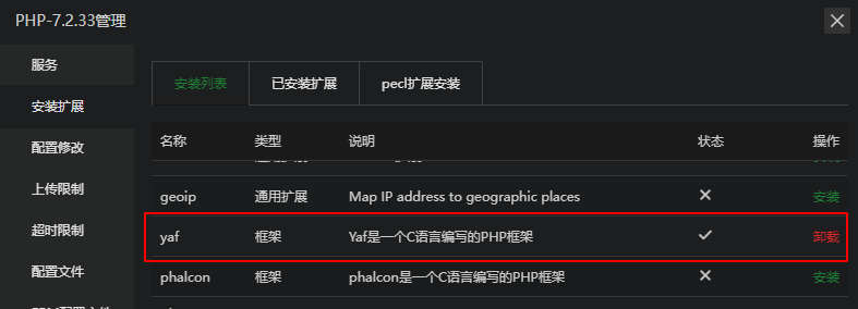 1、对应版本的PHP安装yaf(我的是7.2)