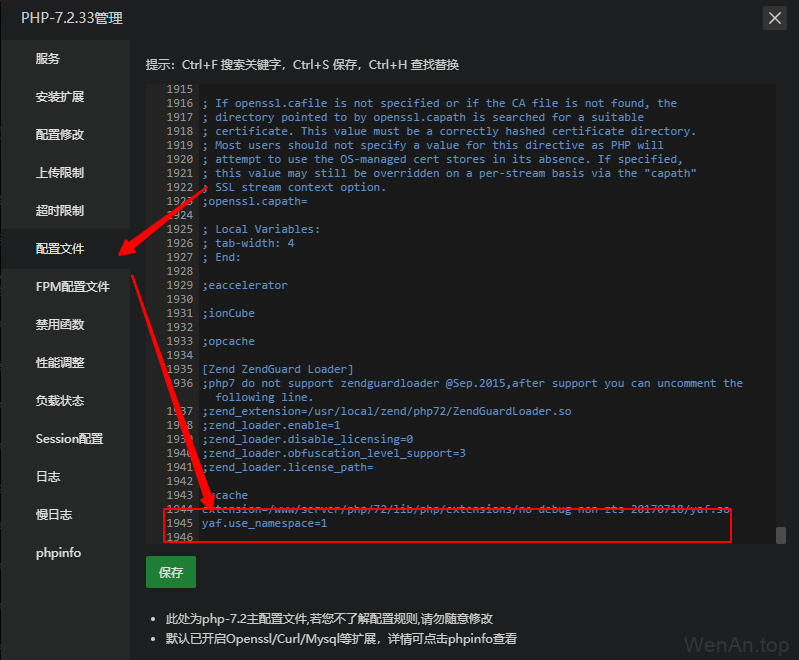 然后在PHP配置文件,最后一行添加如下代码yaf.use_namespace=1